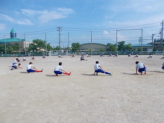 先週のミーティングで、今年度の部活動について話し合いを行った後、生徒、保護者に部活動参加の有無を伺い、16日(火)から部活動を開始しました。体慣らしということで、1時間程度の軽い練習ではありましたが、生徒たちのうれしそうな姿が多く見られました。体調に不安がある、勉強やクラブチームに専念したい等、参加しないという選択肢もあることを伝えてありましたので、一人一人が家族としっかり話し合ってきた様子がうかがえました。今後も、状況によって、参加不参加を変更してよいことも伝えました。