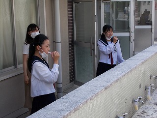 学校歯科医さんにも相談をして、中庭や昇降口横の手洗い場を利用して、歯磨きをできるようにしています。