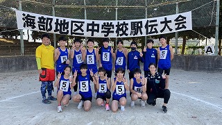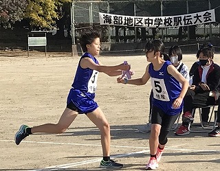 地区駅伝大会。ST後や自主トレーニングという限られた練習の中でこの大会を迎えました。1区の水野くん、黒宮さんは、1位で帰ってきてタスキを2区へつなぎました。その後も、選手全員が各区間で上位入賞を果たし、結果はなんと男子、女子ともに海部地区準優勝という素晴らしい成績をおさめることができました。無観客の中での開催だったので、佐屋中の先生たちは、校長先生、役員の川辺先生や奥田先から中継してもらいながら自宅で応援をしていました。上位争いのデッドヒートの情報を興奮して聞いていました。選手、関係者の皆さん、本当にお疲れさまでした。そして感動をありがとう!