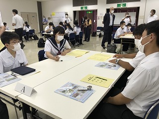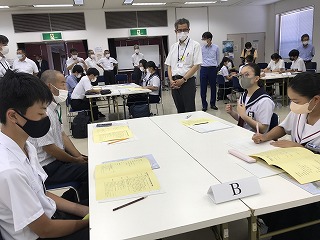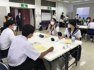 中学生の自治能力の育成を目的とした「愛西市中学生サミット」が開催されました。愛西市6中学校の生徒代表3名ずつがグループに分かれて意見交換をしました。内容は「各校の生徒主体の取組について」と、「いじめ防止について」です。本校の生徒意見収集のための「未来箱」について、他校の生徒から「全校生徒の意見を聞くことがでいていいですね。本校でも収集方法を考えてみます」などの意見をいただきました。3名とも、自分たちが取り組んでいることなので、生き生きと意見を述べていました。