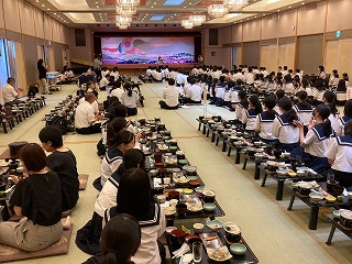 朝食を終え、震災伝承施設の見学を行いました。どの生徒も、現地の語り部の方々のお話を熱心に聞き、学習することができました。