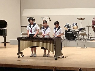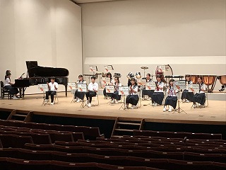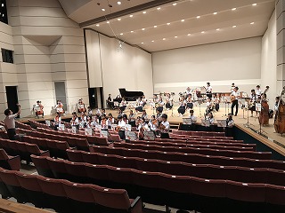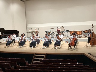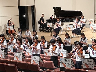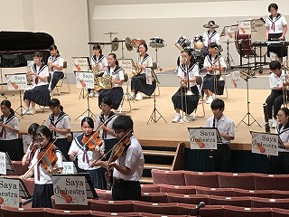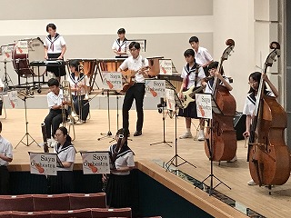 8/4(水)、愛西市文化会館で、今年度、最初で最後の定期演奏会が開催されました。卒業生も手伝いに駆け付けてくれ、とてもアットホームな演奏会になりました。「The Olympic Spirit」で、演奏が始まり、1年生ステージ、アンサンブルステージと、工夫を凝らした演奏が続きました。最後の曲は、ずっとオーケストラ部をみて下さっていた藤原コーチが、佐屋中オーケストラ部のために作曲してくださった「VIVACE~輝け!佐屋中オーケストラ~」で、藤原コーチが指揮をして下さいました。皆、いきいきと演奏していました。会場からは、惜しみない拍手が贈られていました。