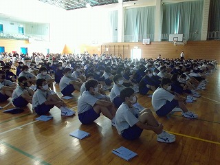 本日、3年生の生徒・保護者を対象に修学旅行説明会を行いました。学年主任より「東京から山梨・静岡方面に変更になったことや、感染症に対する考え方がいろいろあると思いますが、より安全に心に残る修学旅行にしたいので、ぜひご理解・ご協力をおねがいします」との話がありました。その後、担当の川辺先生より旅行に関する話がありました。
