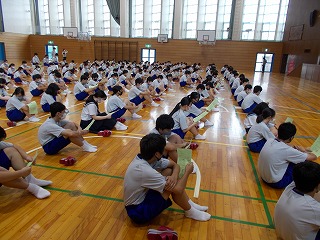 3年生には、学年主任から、修学旅行について、再延期となったことの説明がありました。生徒は「行けなくなったのかと思いましたがよかったです」と、少しだけうれしそうな表情も見られました。厳しい状況ではありますが、関係機関と連絡を密に取って、安心安全な旅行となるよう準備を進めて参ります。