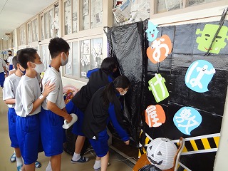 10月13日(水)、文化祭を行いました。各クラスが「SDGs」を意識して、みんなを楽しませる出し物を考えました。1年生は初めての取組でしたが、参加者の皆さんはとても楽しんでいました。