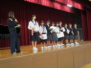 続いて、秋の新人戦など部活動の表彰披露が行われました。