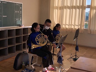 11月14日(土)午後、自衛隊第10音楽隊の方9名が、本校のオーケストラ部の演奏指導に来てくださいました。マンツーマンで指導をして下さったり、合奏をして下さったりと、夢のような時間を過ごしました。いつも指導のお手伝いをして下さっている方も含め、心より感謝申し上げます。
