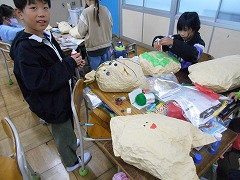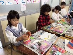 図工の時間には、学習成果展に向けて紙粘土でお弁当を作りました。