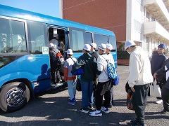 今年からバスに乗って外部のプールまで移動して授業を行います。