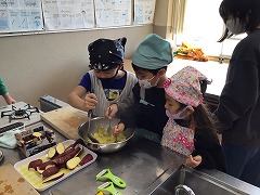 掘ったさつまいもを使って、さつまいもきんとんを作りました。