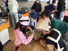 包丁や火を使う所は、6年生に助けてもらいながら行いました。
