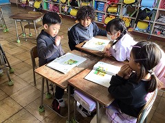 今日は、役を決めて絵を見ながら話をしました。
