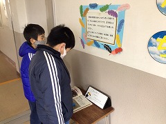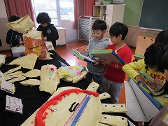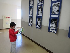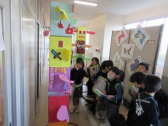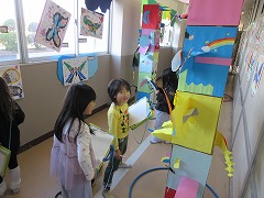 他の学年の作品を見て、「すごい上手」「かわいいね」「おにいちゃんのあったよ」と、上級生の作品の素晴らしさを感じていました。