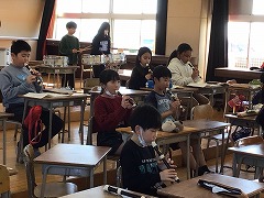 3年生では、音楽の授業で「聖者の行進」の合奏を行いました。今年から始めたリコーダーだけでなく、打楽器もリズムを合わせて演奏することができました。