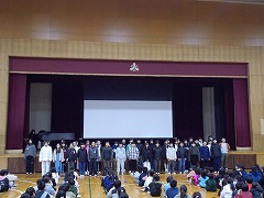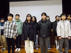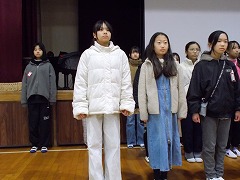 卒業式の歌を全校児童の前で歌いました。