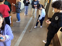 できた子から紐の巻き方や投げ方を練習していきました。