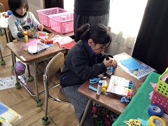 一通りのやり方を教えてもらった後は、自分なりに考えて楽しそうに取り組んでいました。