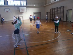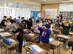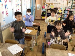 音楽の時間には、体ほぐしやリズム遊びをして授業が始まりました。