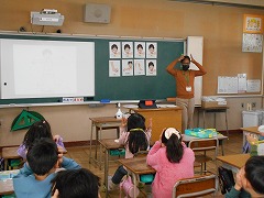 今日の外国語の授業では、「頭」「肩」「膝」などの体について学習をしました。