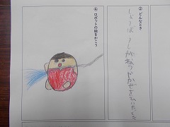 国語の学習では、4枚の絵から想像し、オリジナルの物語をつくりました。4コマ漫画のように面白い話をつくることができました。