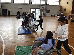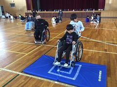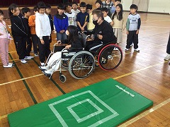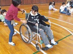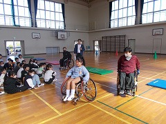 3年生は福祉実践教室で「車いす」について学びました。講師の先生から、車いすの使い方や、乗るときに気をつけることを教えていただきました。実際に車いすを動かし、小さい段差を上ることがどれだけ難しいのかを実感することができました。