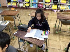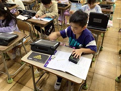 音楽の授業では、歌や鍵盤ハーモニカに取り組んでいます。今日は「こぎつね」を歌い、秋らしい音楽に親しむことができました。鍵盤ハーモニカは、何度も練習するうちに指使いを間違えずに弾くことができるようになってきました。