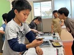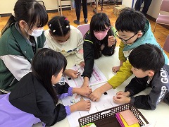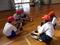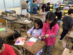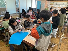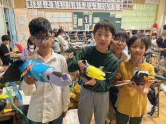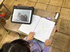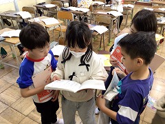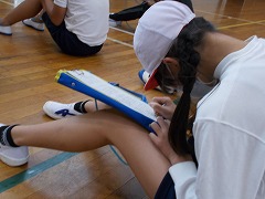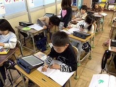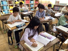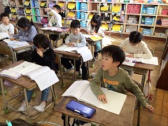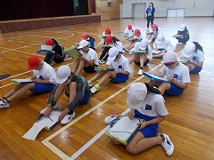 国語の時間には、中庭で見つけた生き物について、文章に書き表しました。