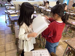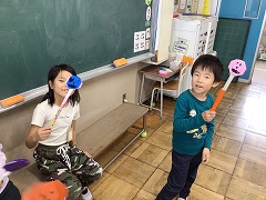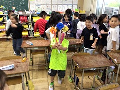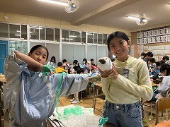 4年生は理科の様子を紹介します。空気について学んでいます。空気鉄砲で球を飛ばす体験を行いました。