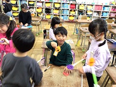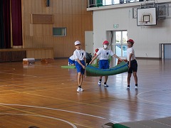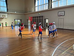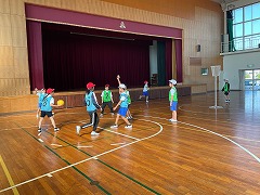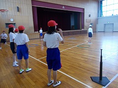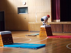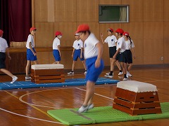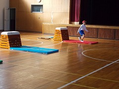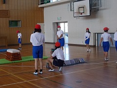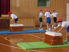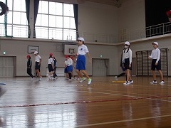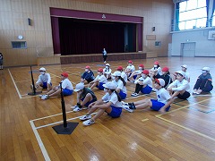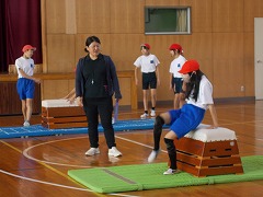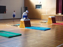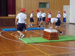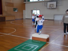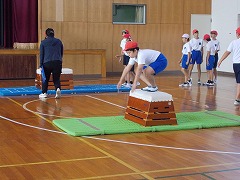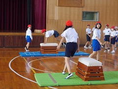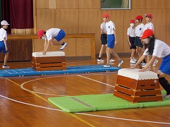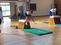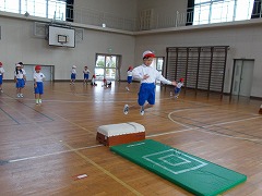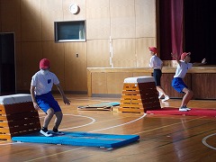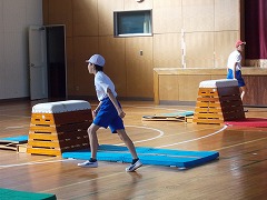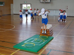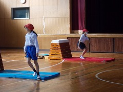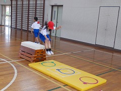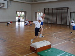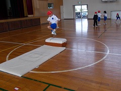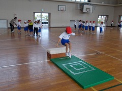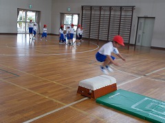 片足で踏み切ってジャンプをしたり、両足でジャンプをしたり、いろいろな跳び方の練習をしました。