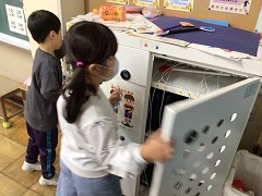 今日は、ラディッシュとカブの好きな方を選んで、種を植えました。すごく小さな種にとても驚いている様子でした。子どもたちは、「早く育ってほしいな」「いつ芽がでるかな」と生長を楽しみにしていました。