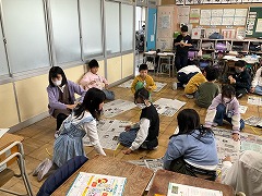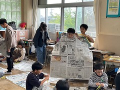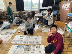 算数では面積の学習を行っています。1㎡の大きさを新聞で作りました。面積の量感をつかむことができました。