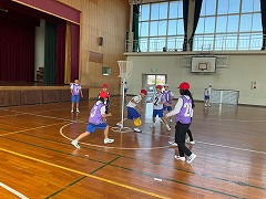 体育では、セストボールに取り組んでいます。白熱した試合が繰り広げられています。