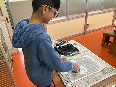 鉛筆とは違う筆に戸惑いながらも、真剣に取り組んでいました。