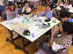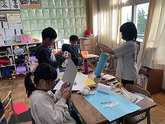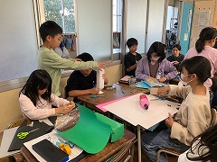 今日は、箱を組み立て、箱の周りに画用紙や色紙を貼っていきました。