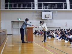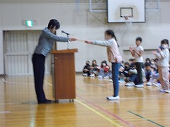 選ばれた児童の代表として、6年生が表彰状を受け取りました。