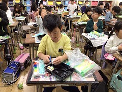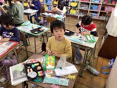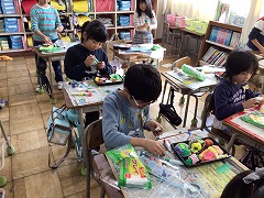 図工の時間には、学習成果展に向けて紙粘土でお弁当を作りました。
