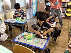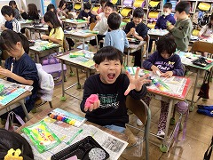 図工では、外で作品の写真撮影を行いました。撮影した写真を使って、作品を紹介する図鑑を作っていきます。