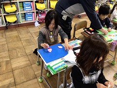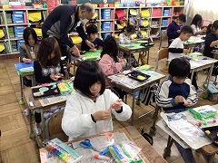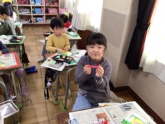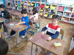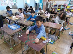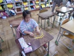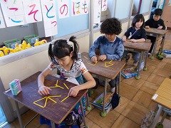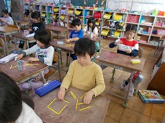 算数の時間には、棒を使っていろいろな形を作ったり、点をつないで形を作りました。