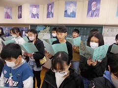 留学生にドイツのクリスマスについて紹介してもらいました。留学生とは今日でお別れなので、これまでの感謝の気持ちをお互いに伝え合いました。
