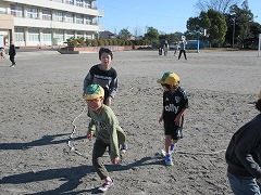 縄跳びの徐々にできる回数が増えてきました。あやとびにもチャレンジしました。