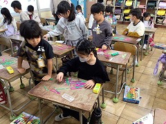 算数の時間には、数え棒を使って100までの数について学習しました。