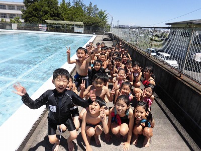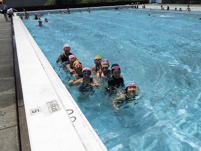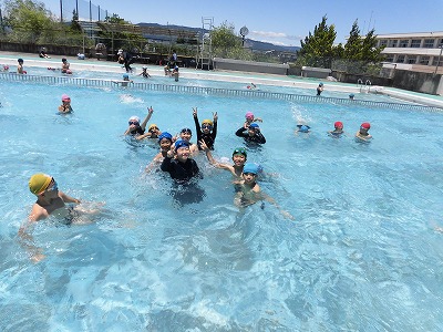 列車を作って周りをグルグル回ったり、バタ足や浮きの練習をしました。