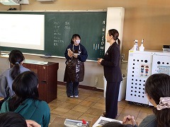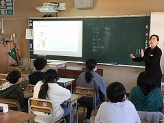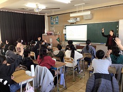 今日は、キャリア学習の様子を紹介します。社会型体験研修で年間を通して百貨店で働いている先生に、お店で働く人たちについて教えていただきました。