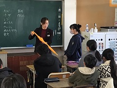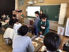 事前にとったアンケート結果から、働くために大事なことや今やるべきことなど、6年生が今考えていることは何かを紹介しながら、実際に働くと大切なことは何かを学習しました。学校で行っている係活動や挨拶、ルールを守ることが自分たちの将来に繋がっていくことを学びました。また、実際に販売員として商品を販売する体験も行いました。