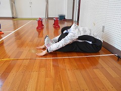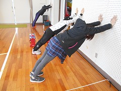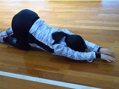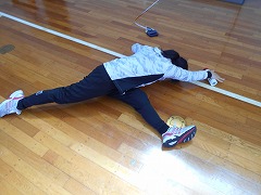 繰り返し行い、身体を温めていきます。ストレッチ後の長座体前屈では、どの先生も10cmほど記録がのびました。