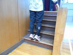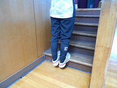 段差のある所につま先で立ち、かかとを上げ下げします。