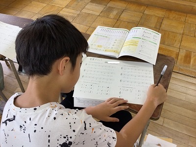 音楽の時間には、「いつでもあの海は」の歌のテストを行っていました。