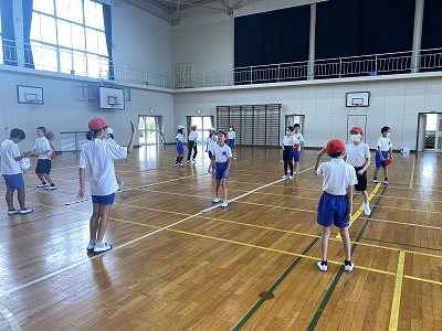 久しぶりに行うので、うまくリズムに乗れず苦戦している子もいましたが、声をかけ合いながら楽しそうに行っていました。