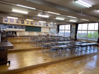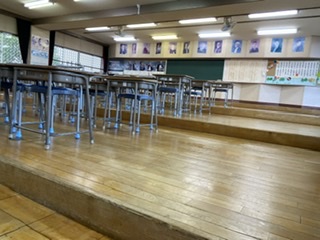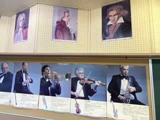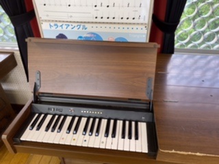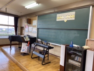「おんがくしつ」では、うたや がっき、リズムの べんきょうを します。