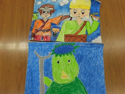 学習発表会で披露した劇「そんごくう」の物語の絵を描きました。